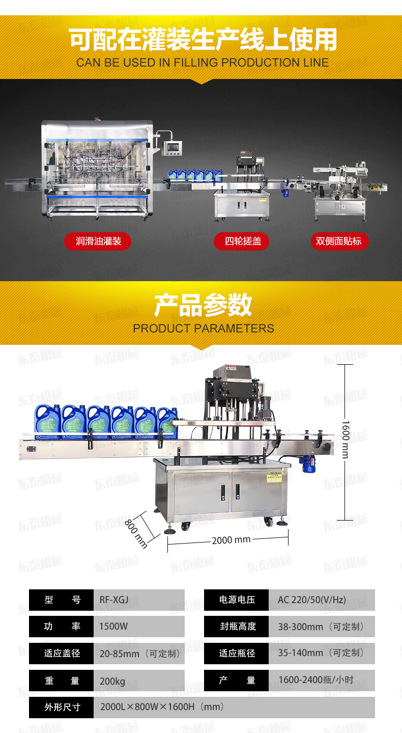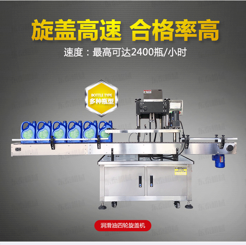 機(jī)油自動(dòng)搓蓋機(jī)電氣控制運(yùn)動(dòng),穩(wěn)定性強(qiáng); 設(shè)有定位裝置,旋蓋標(biāo)準(zhǔn),操作方便; 鎖蓋范圍寬,可鎖不同形狀規(guī)格的瓶蓋;解決了噴頭、泵頭、噴霧泵、手扣式噴頭旋蓋難的